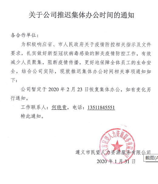 關(guān)于公司推遲集體辦公時間的通知